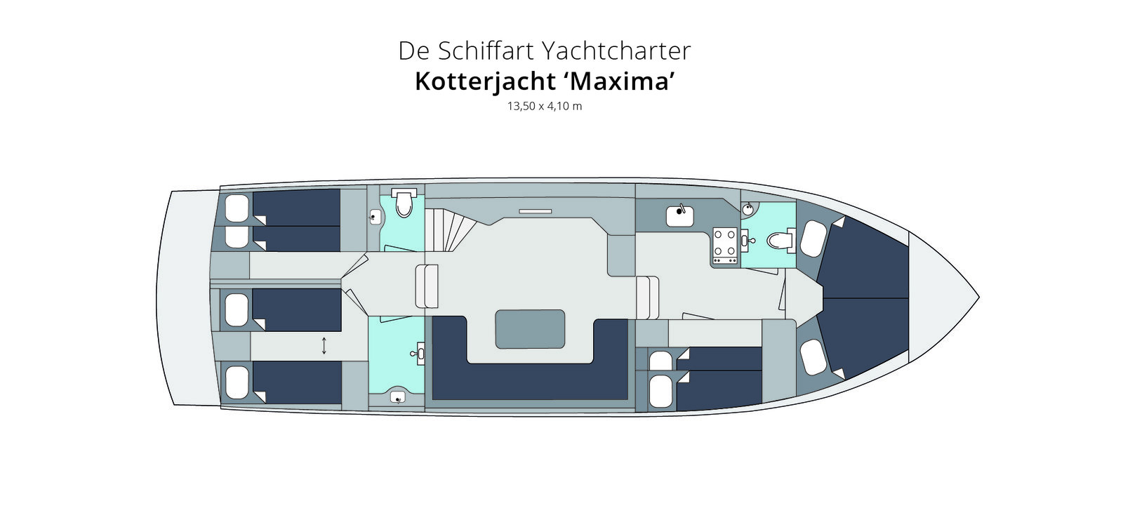 Let op: de Maxima wordt momenteel verbouwd en is vanaf 2026 beschikbaar als 8-persoonsschip.