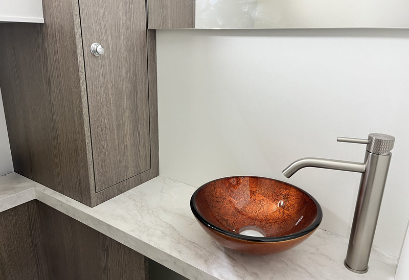 De salon is een fijne plek om samen te ontspannen. Doordat het licht van boven de ruimte binnenstroomt, voelt het interieur open en uitnodigend. Het zitgedeelte kan eenvoudig worden omgebouwd tot een extra slaapplaats. De compleet uitgeruste keuken; met koelkast, gasfornuis en inventaris, nodigt uit om ’s ochtends een vers ontbijtje te maken of ’s avonds gezellig te koken. Voor een ontspannen avond is er ook een televisie aanwezig.